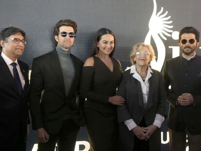 La alcaldesa, Manuela Carmena, presenta la gala del cine indio que la ciudad acogerá por primera vez este junio junto con sus estrellas