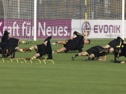 Mourinho adoctrina a sus futbolistas para transitar sin demora por el medio campo para evitar los contragolpes del Borussia Essien y Modric, la duda para acompañar hoy a Xabi