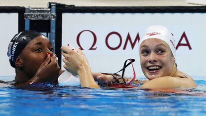 La canadiense, de solo 16 años, y la estadounidense ganan el oro con récord olímpico en los 100 libres con el mismo tiempo, 52.70
