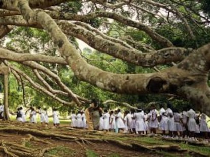 Un enorme ficus es la estrella de los jardines botánicos de Peradeniya en Kandy, en Sri Lanka. Fue plantado en 1861