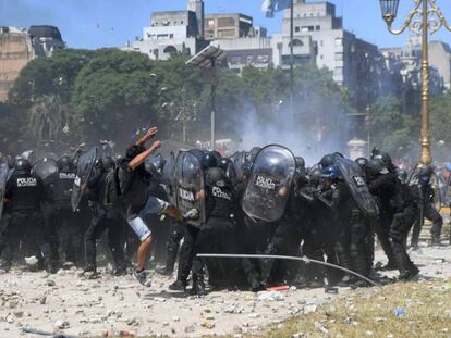Decenas de heridos y detenidos en los enfrentamientos junto al Congreso entre manifestantes y policía