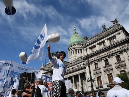 A su regreso de la gira española, el presidente de Argentina enfrenta un paro docente en el inicio de clases y una marcha de la CGT a la Plaza de Mayo