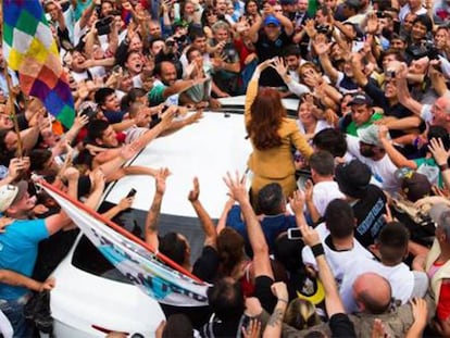 Unos miles de fieles, muchos menos que la primera vez que declaró, apoyan a la expresidenta a la puerta de los tribunales con gritos de "vamos a volver"
