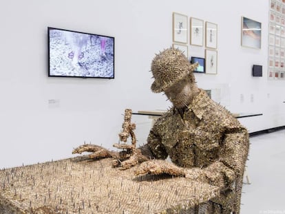 El talante crítico de la artista se muestra en los fotomontajes y la videoinstalación que forman parte de la exposición que le dedica el Centro Andaluz de Arte Contemporáneo