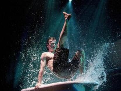 'Soap' es un cabaret con ocho actores que hacen acrobacias dentro de pilas mientras les llueve