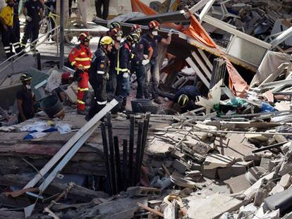 Tres personas heridas y varios desaparecidos tras el derrumbe de un bloque de viviendas este jueves en Los Cristianos, en la localidad tinerfeña de Arona