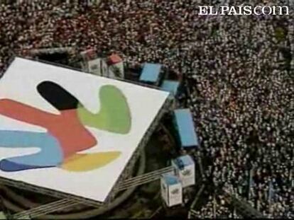 Han formado un enorme mosaico humano con los colores de la mano olímpica