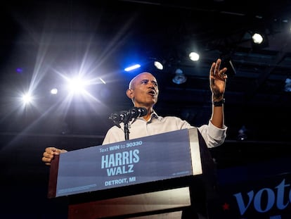 El rapero Eminem y el ex presidente unieron fuerzas en Detroit para mostrar su apoyo a la candidata Kamala Harris