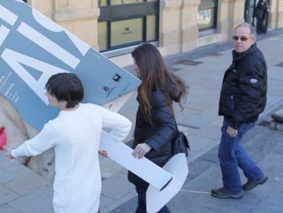 El exalcalde donostiarra y otros tres ediles restauraron el logo de San Sebastian 2016 que fue boicoteado por un grupo contra el AVE
