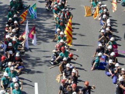Miles de manifestantes recorren el centro de Madrid en apoyo a la 'marcha negra' del carbón El Ministerio de Industria ha recortado este año un 63% las subvenciones del sector