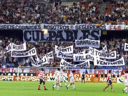 Los hinchas del Atlético se enfrentaron a su equipo, al que culparon del descenso en una noche vandálica