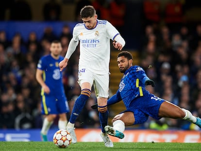 Los blancos se imponen al Chelsea con un triplete de Benzema y un gran Valverde en Stamford Bridge, donde cayeron el año pasado, y encarrilan el pase a las semifinales