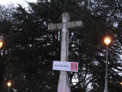 El regidor ordena retirar un cartel con "su" logo de la cruz de los caídos de O Castro