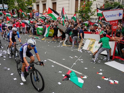 Las diferentes protestas de los aficionados contra Israel obligan a la organización a acabar la jornada tres kilómetros antes de la meta