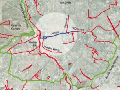 El carril bici permite dar la vuelta completa a Madrid sin peligros para los usuarios.