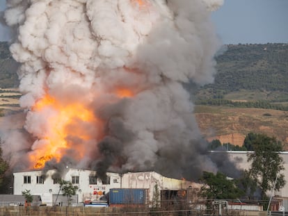 El fuego ha causado heridas leves a tres bomberos del Consorcio Provincial y un trabajador de la planta