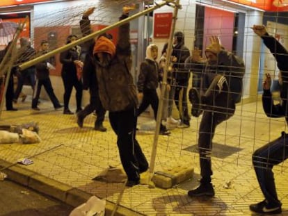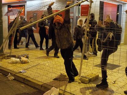 Unos 300 vecinos protestaban por la transformación de una calle en un bulevar Hay marquesinas, escaparates y cabinas destrozados. También 30 contenedores quemados Nueve policías han resultado heridos y 17 personas han sido detenidas, una de ellas un menor