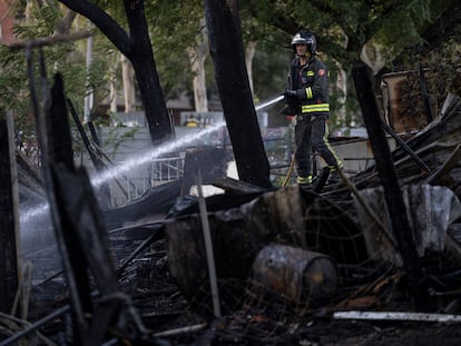 El fuego ha afectado a media docena de barracas en un espacio junto a las obras de la estación de La Sagrera