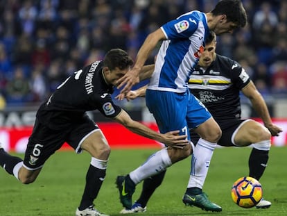 El conjunto blanquiazul cosecha su primer triunfo en Cornellà gracias a la gran actuación del argentino, autor de dos goles