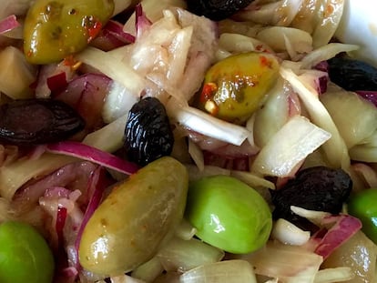 Recurrimos -sí, otra vez- a la creatividad de Ottolenghi para hacer una versión de una de sus ensaladas. El aliño de cebolla marinada también lo podrías usar con un pescado azul o unos champiñones a la plancha.