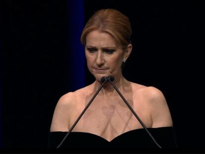 La cantante habla por primera vez en público y se sube de nuevo a un escenario para pronunciar un emotivo discurso en recuerdo del fallecido René Angélil