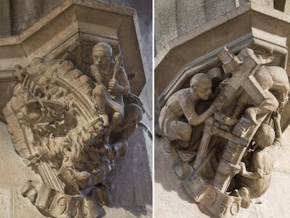 La torre de la iglesia de Santa Cruz, atalaya de Madrid, en la fase final de su restauración Ignacio González anuncia una modificación de la ley de Patrimonio