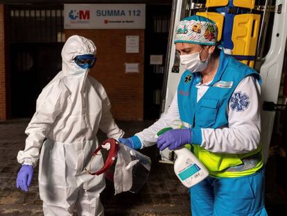 Según los últimos datos de la Comunidad, se registraron 766 sanitarios contagiados entre el 10 y el 17 de mayo, de los 1.027 que se cifran en total para toda la población. Suponen ya el 14,22% de las infecciones