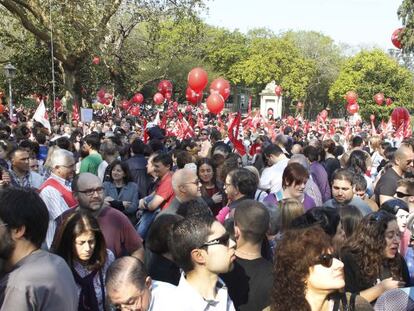 CC OO y UGT reúnen en el centro de Madrid a 170.000 personas, según cálculos de EL PAÍS Miles de personas permanecen en la Puerta del Sol tras concluir la protesta