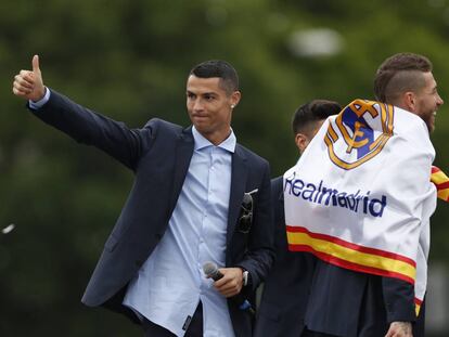 24 horas después de insinuar que dejará el Real Madrid, el portugués rebaja la tensión en las celebraciones institucionales. "Es un orgullo jugar en este club", dice en el Bernabéu