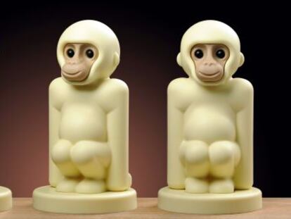 Una empresa andaluza de dulces expone figuras de chocolate de los Reyes y los Príncipes de Asturias