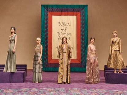 La nueva colección de la maison se alía con Judy Chicago. La artista feminista ha diseñado los bordados y los emblemas que los artesanos de la casa han plasmado en vestidos y decorados.