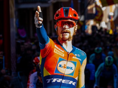El ciclista norteamericano del Lidl-Trek se impone en una etapa de lo más caótica, reducida y a punto de suspenderse por el fuerte viento, y sin cambios en la general. Ayuso mantiene el liderato con un segundo sobre Roglic