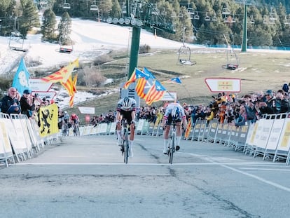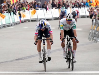 Tras una criba en la montaña de Montserrat, el esloveno vence la etapa al ‘sprint’ frente al español, ambos líderes en el certamen