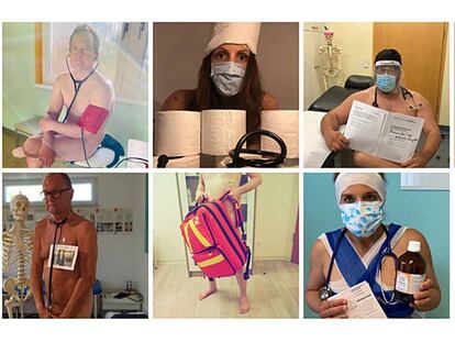 La desnudez es "un símbolo de lo vulnerables que somos si no tenemos protección", proclama un participante de la protesta, que exige trajes de protección para los facultativos