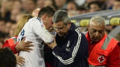 El público vuelve a pitar a Mourinho y a ovacionar el nombre de Casillas, y sufre ante la retirada en camilla del alemán