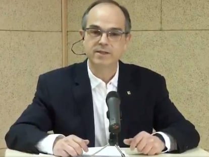El candidato de Junts per Catalunya da una rueda de prensa por primera vez desde que está encarcelado, autorizado por la Junta Electoral