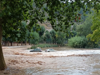 Los coches estaban estacionados en la zona de la cañada de esta localidad y alguno ha recorrido varios metros sobre el río hasta quedar al borde de la presa