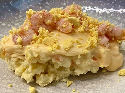 Ensaladilla rusa con variantes, sobre rosquilla de pan crujiente y una anchoa encima para rematar. ¿Son las marineras la mejor tapa de España? Conoce su historia, sus variedades y los mejores sitios para probarlas