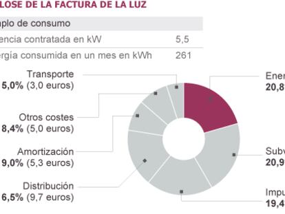 Menos de la mitad de la factura eléctrica va destinado a pagar el consumo. El resto son pagos en concepto de impuestos y subvenciones