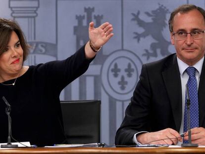 Sigue en directo en EL PAÍS VÍDEO la comparecencia de Soraya Sáenz de Santamaría, Fátima Báñez y Rafael Catalá