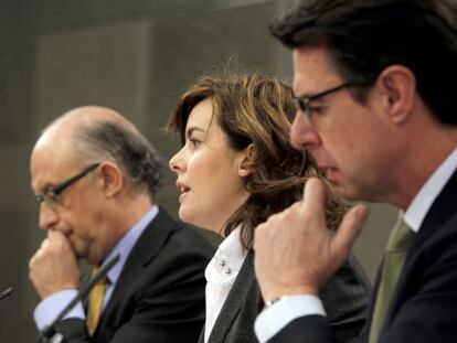 La vicepresidenta matiza a Montoro sobre el déficit y a Luis de Guindos sobre el contrato único