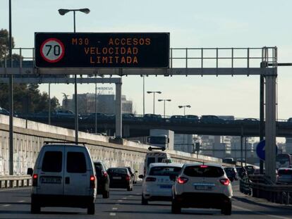 Este viernes, por segundo día consecutivo, no se puede circular a más de 70 kilómetros por hora en la M-30 y en los accesos a la zona interior de la M-40 en la capital