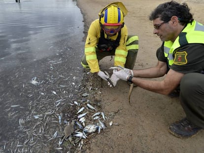La retirada de tres toneladas de peces muertos por asfixia confirma el estado de colapso por la agricultura y el urbanismo excesivos de la mayor laguna salada de Europa