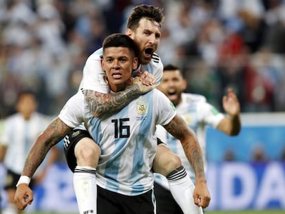 El central hizo de delantero para salvar a Argentina con un remate con su pierna mala, un ejemplo del lío táctico de su equipo