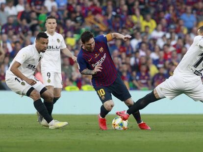 El argentino, primer jugador en la historia que marca en seis finales coperas, fue el único que inquietó al Valencia