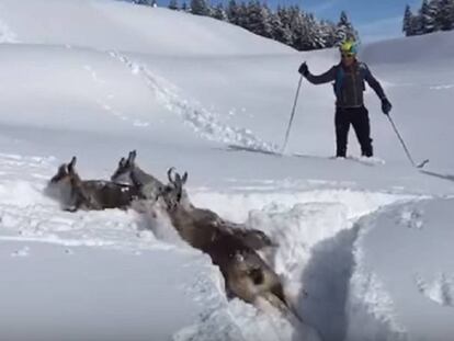 Corzos atrapados por la nieve en los Pirineos