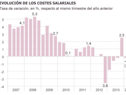 La devaluación interna avanza de forma desequilibrada y aumenta la desigualdad Los costes salariales bajan por cuatro trimestre consecutivo