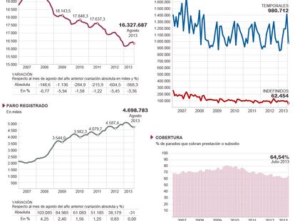 Paro registrado, afiliación media a la Seguridad Social, contratos y cobertura del desempleo