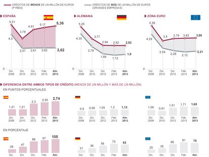 La brecha entre el coste de financiación de las grandes y las pequeñas empresas españolas se dispara hasta el 105% La diferencia con Alemania sigue creciendo