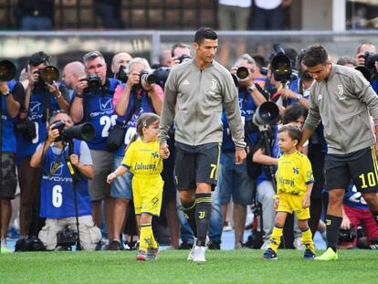 El futbolista luce moda 'made in Italy' en la calle y viste a su familia con la camiseta de la Juve